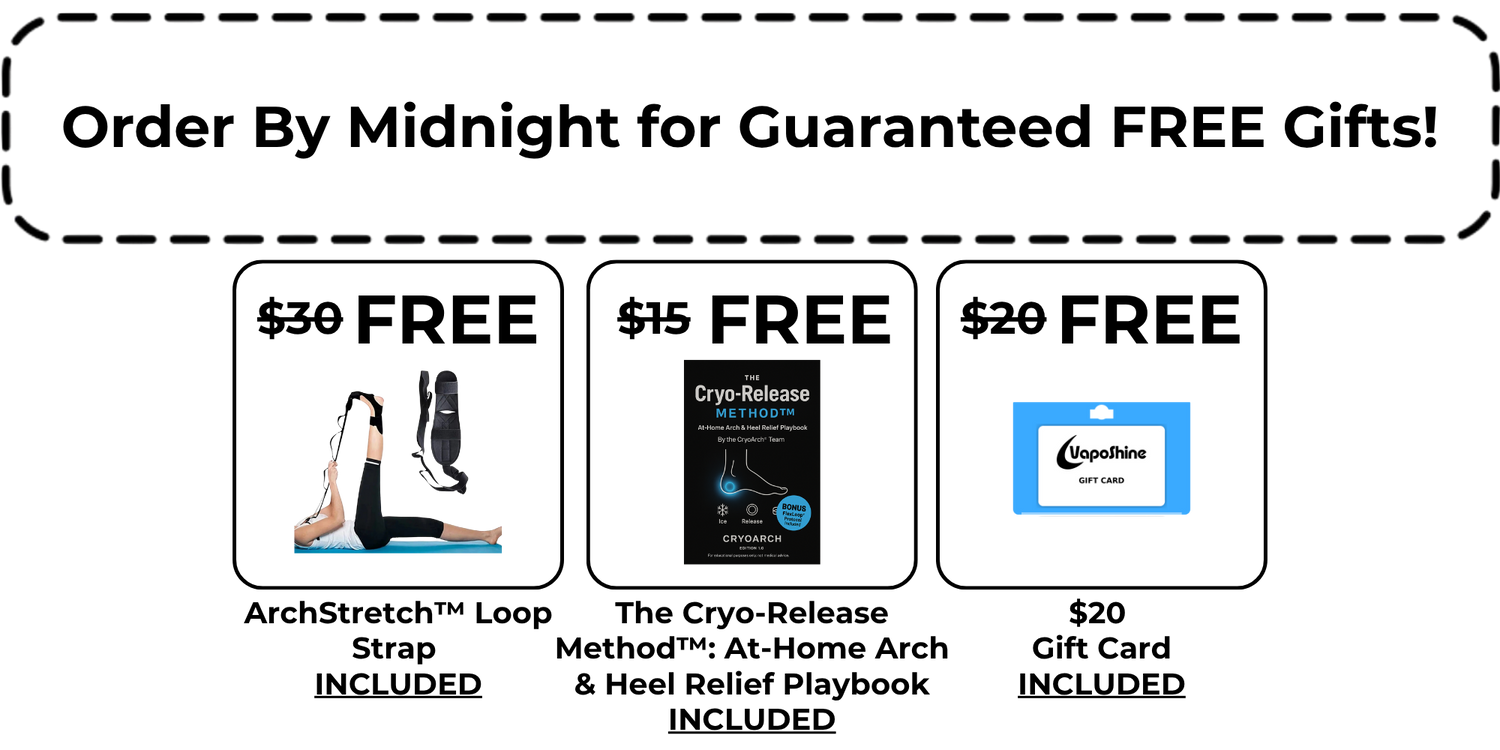 Our proprietary freezable gel core maintains therapeutic cold temperatures for 15-20 minutes of continuous use—long enough for a complete morning and evening session. Unlike competitors that cool down quickly or require constant refreezing between feet, CryoArch™ uses advanced temperature regulation to ensure consistent cold therapy throughout your routine, penetrating deep into inflamed tissue to reduce swelling and numb pain where you need it most.