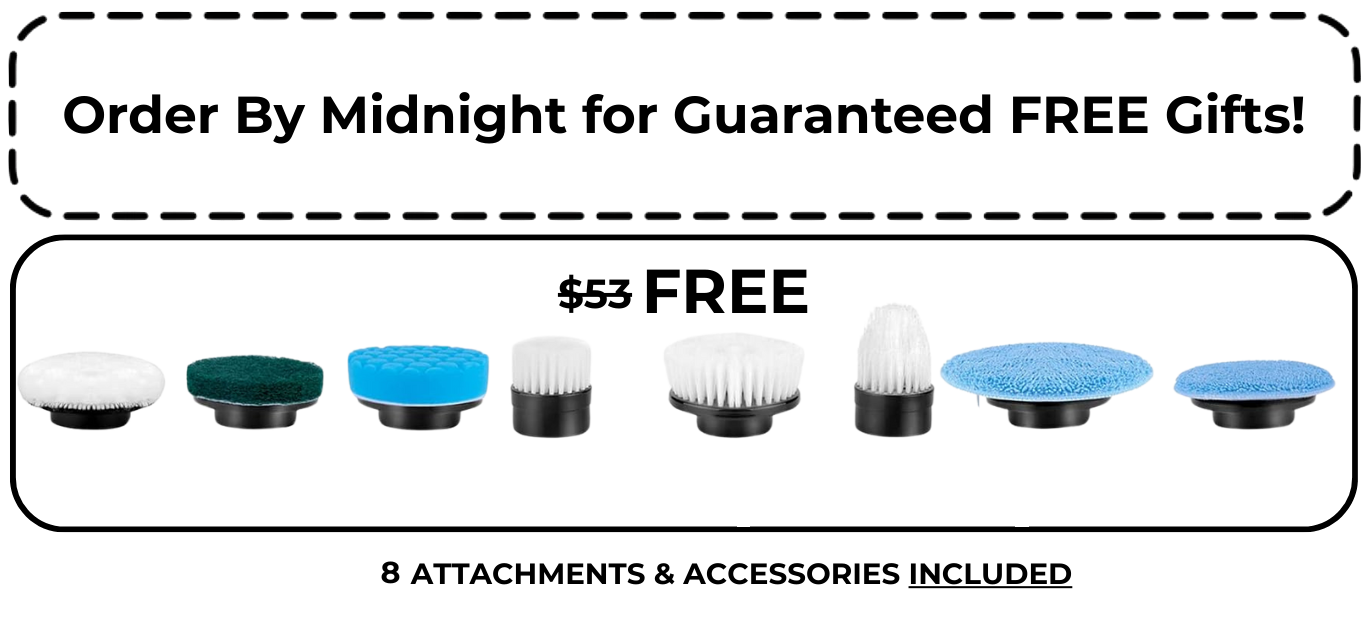 a PowerSpin™ main unit, telescopic stainless-steel handle, charging cable, and (FOR A LIMITED TIME ONLY) 8 attachments: